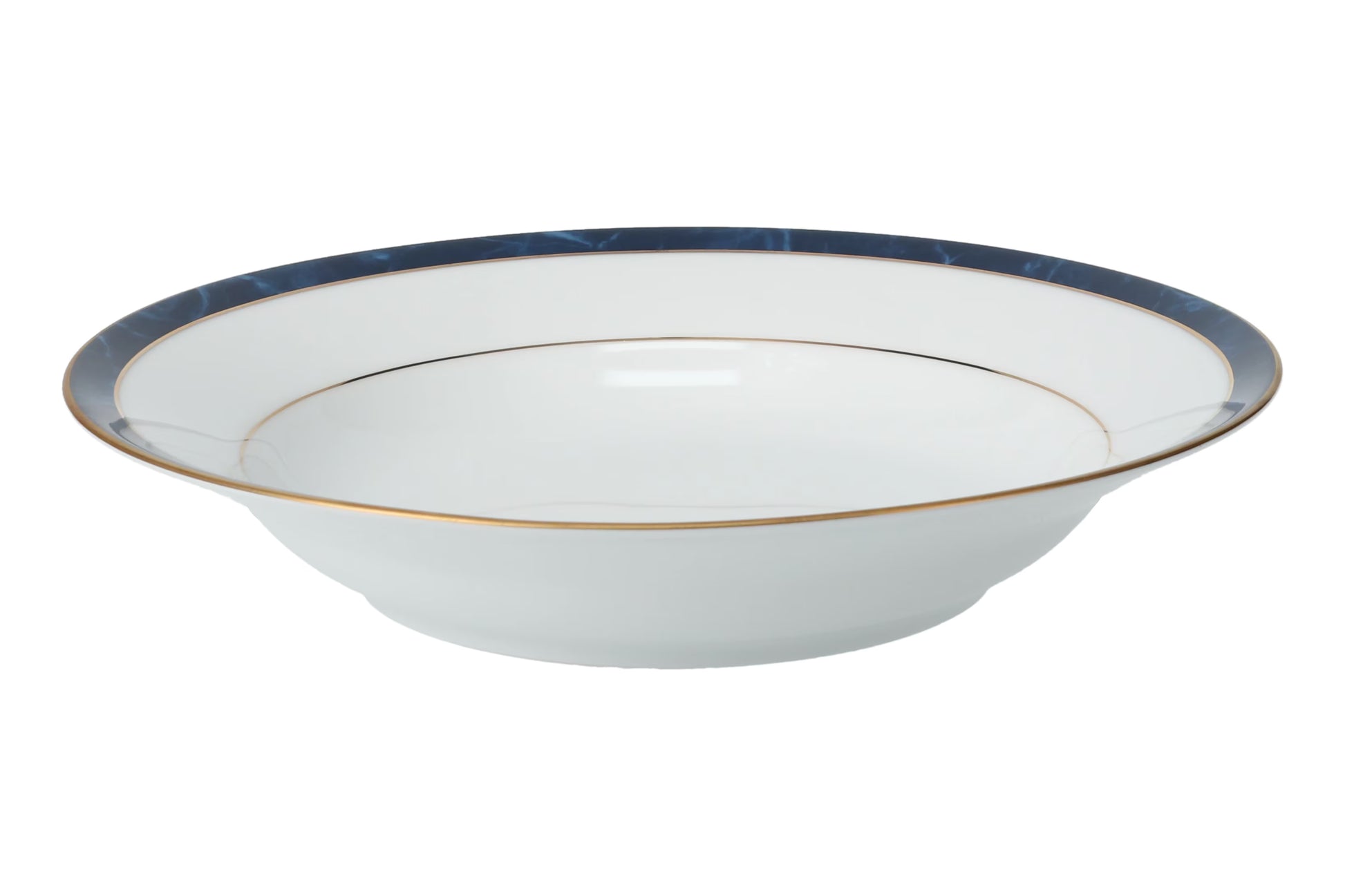Marble Blue (Ana) by Noritake is part of the esteemed Commander Collection, crafted to elevate the dining experience. Set against a brilliant white background, this range showcases classic silhouettes adorned with a striking dark blue marble pattern. Elegant gold accents complete the design, bringing a vivid and luxurious touch to any table setting.