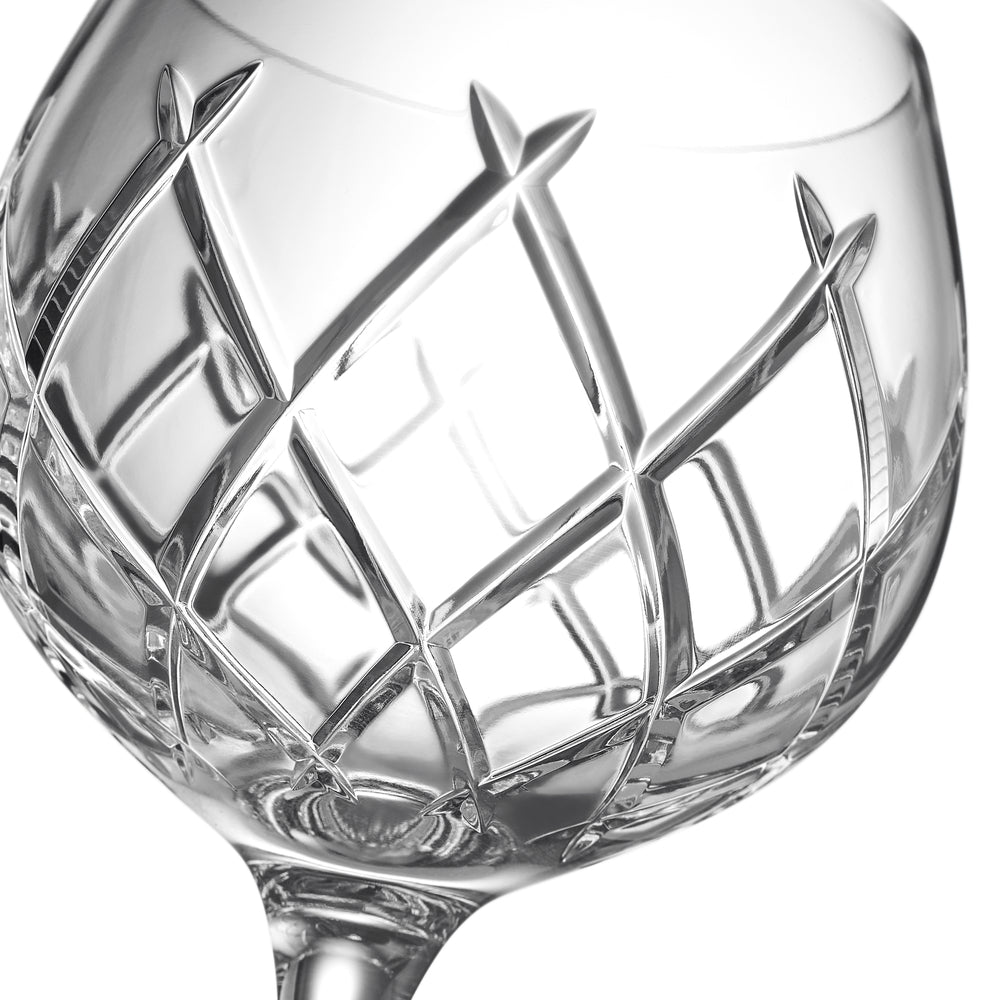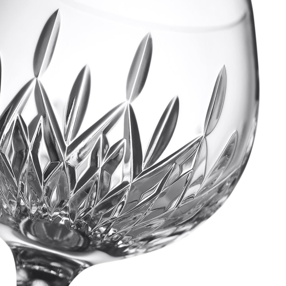 Indulge in the optimum gin experience with our striking set of four Gin Journeys Balloon Wine glasses, designed by tasting experts to enrich the aromas and botanical flavours of this iconic summer spirit. Each crystal gin balloon in this set features a delicate short stem and beautifully round bowl that traps the aromas inside the glass and allows the spirit more room to breathe - perfect for gins with a high alcohol content. Intricately adorned with the Short Stories Aras, Cluin and Olann along with our best-selling Lismore pattern, this pristine set of gin balloons are perfect for entertaining, effortlessly elevating any casual gin moment into a celebration. Beautifully presented in a sleek Gin Journeys gift box, this set of gin balloons makes an ideal gift.